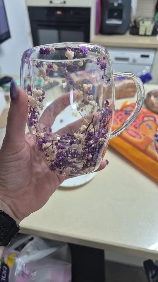 They are delicately sealed between the glass layers, creating a miniature, everlasting bouquet that never needs watering. It’s a little piece of nature’s art to brighten your desk, your breakfast nook, or your quiet moments alone.